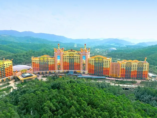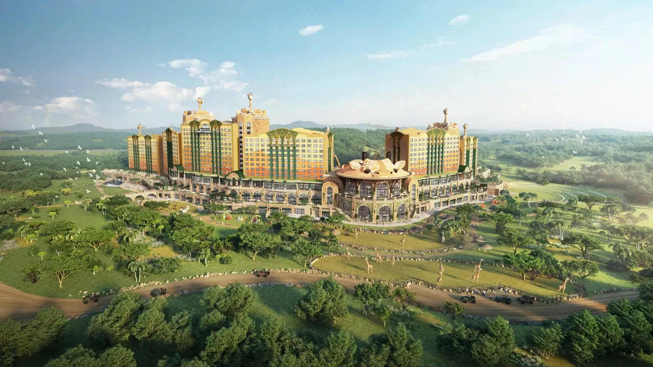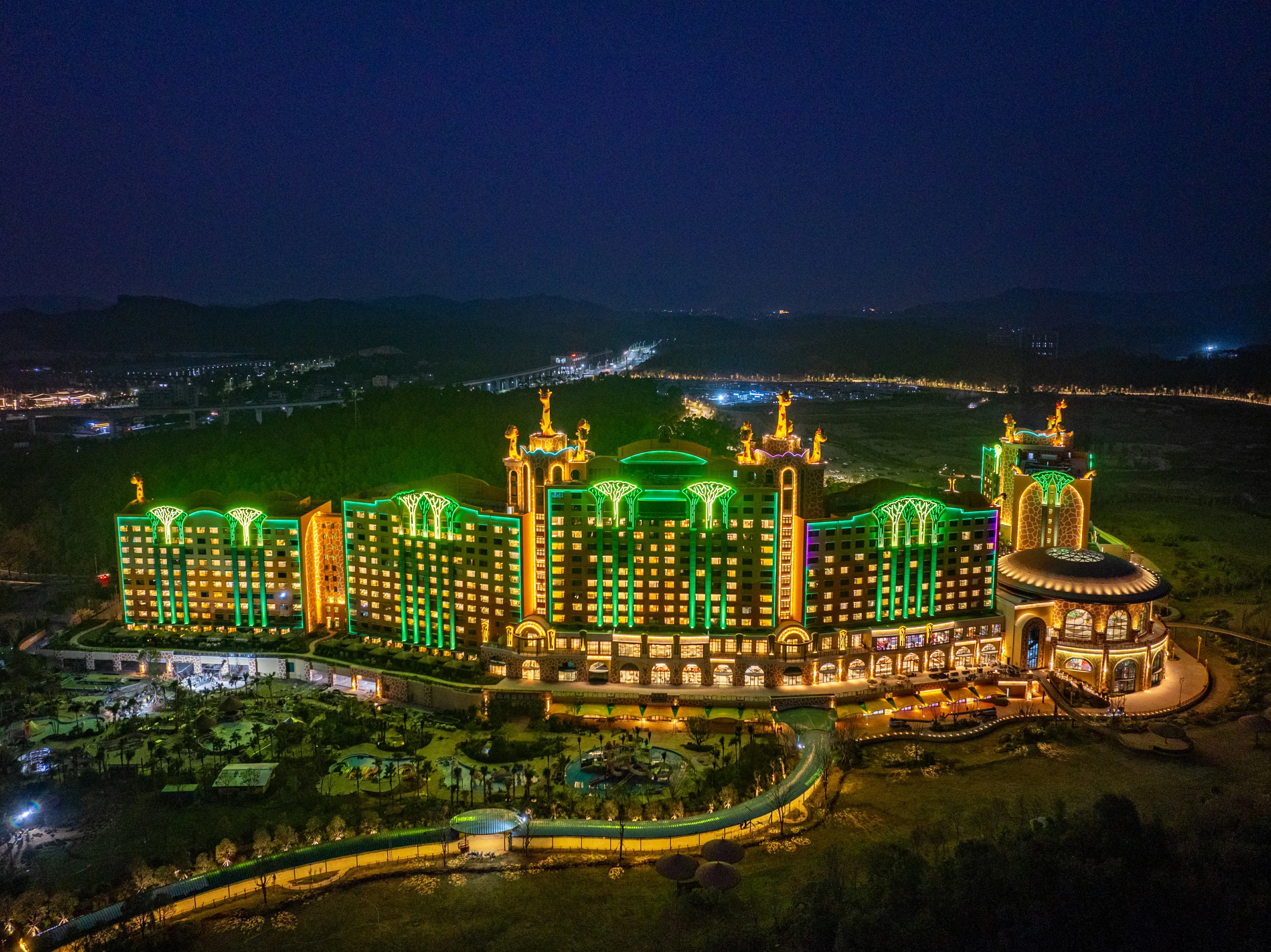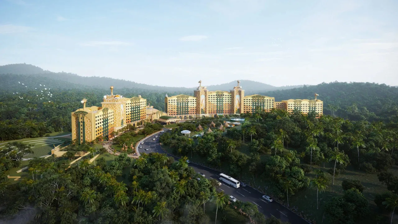 清远长隆长颈鹿酒店定位为高端亲子主题酒店,其主题取材于长隆原创动画片《卡卡虎大冒险》中长颈鹿“酋长一家”的故事。酒店以沉浸式动物主题体验为核心,深度融合度假区的森林生态与野生动物元素,采用“非洲草原 + 森林探险”的主题概念,并结合清远本地生态特色,打造具有鲜明辨识度的差异化度假体验。