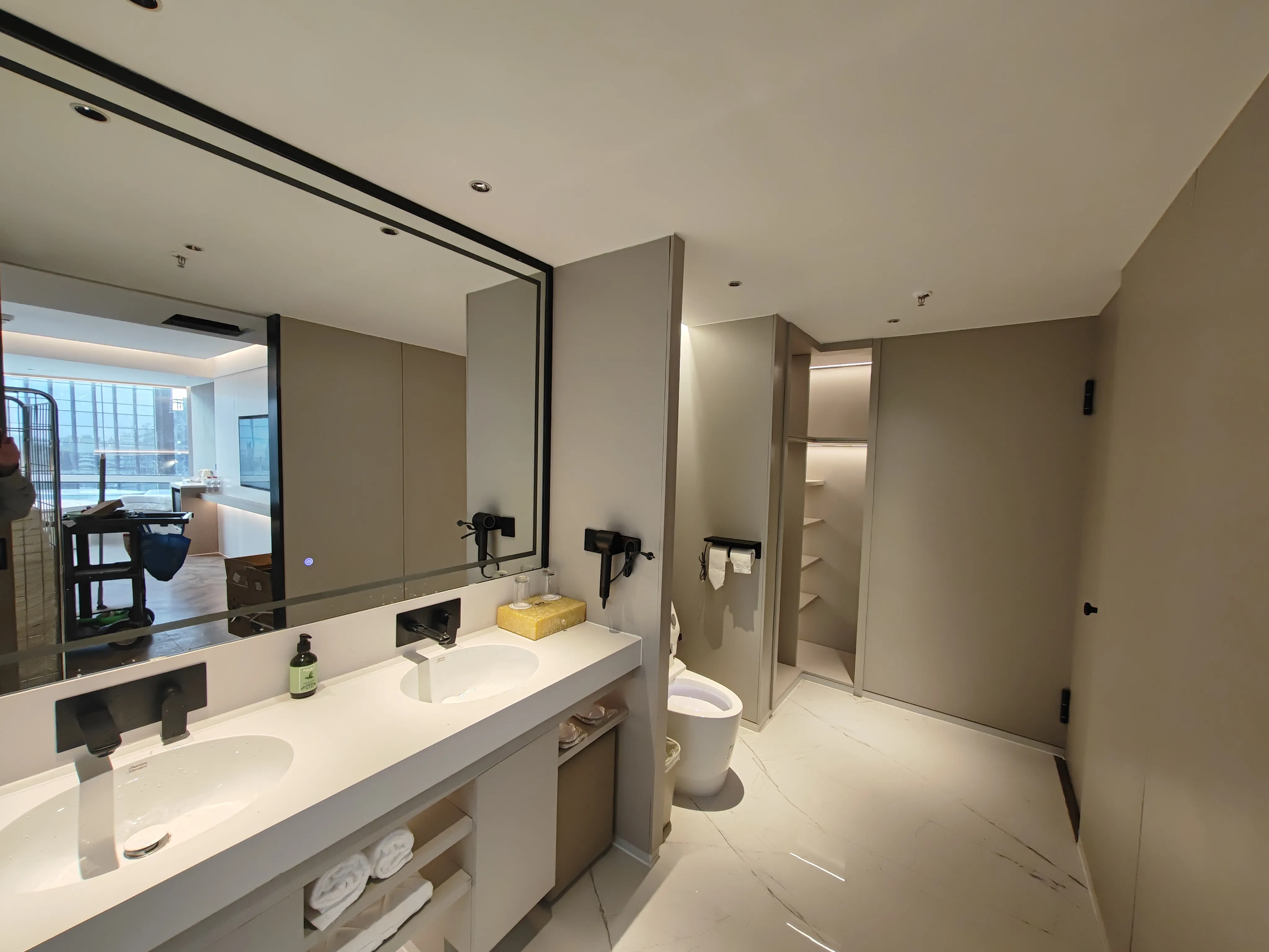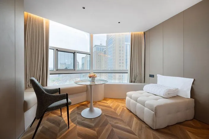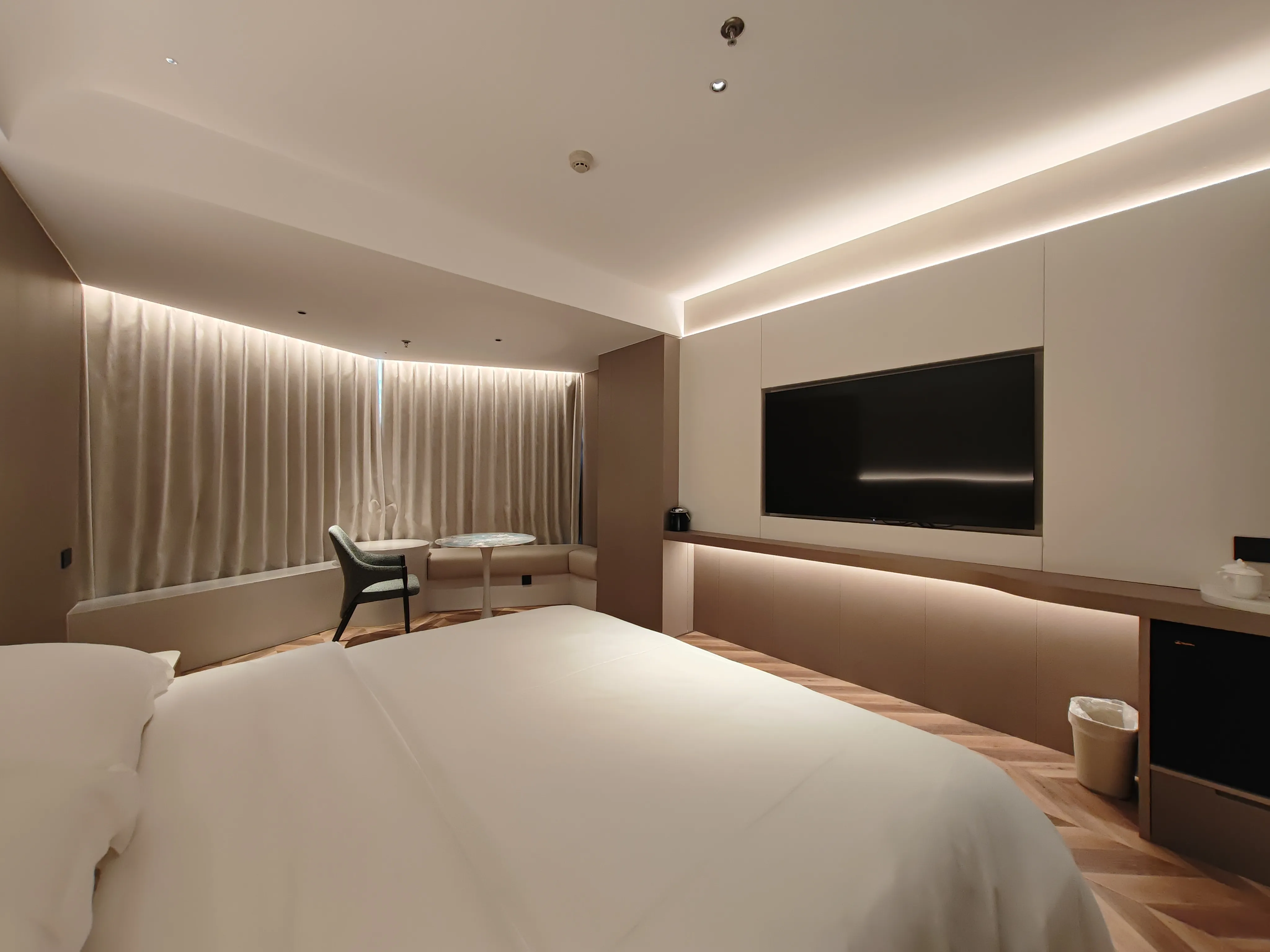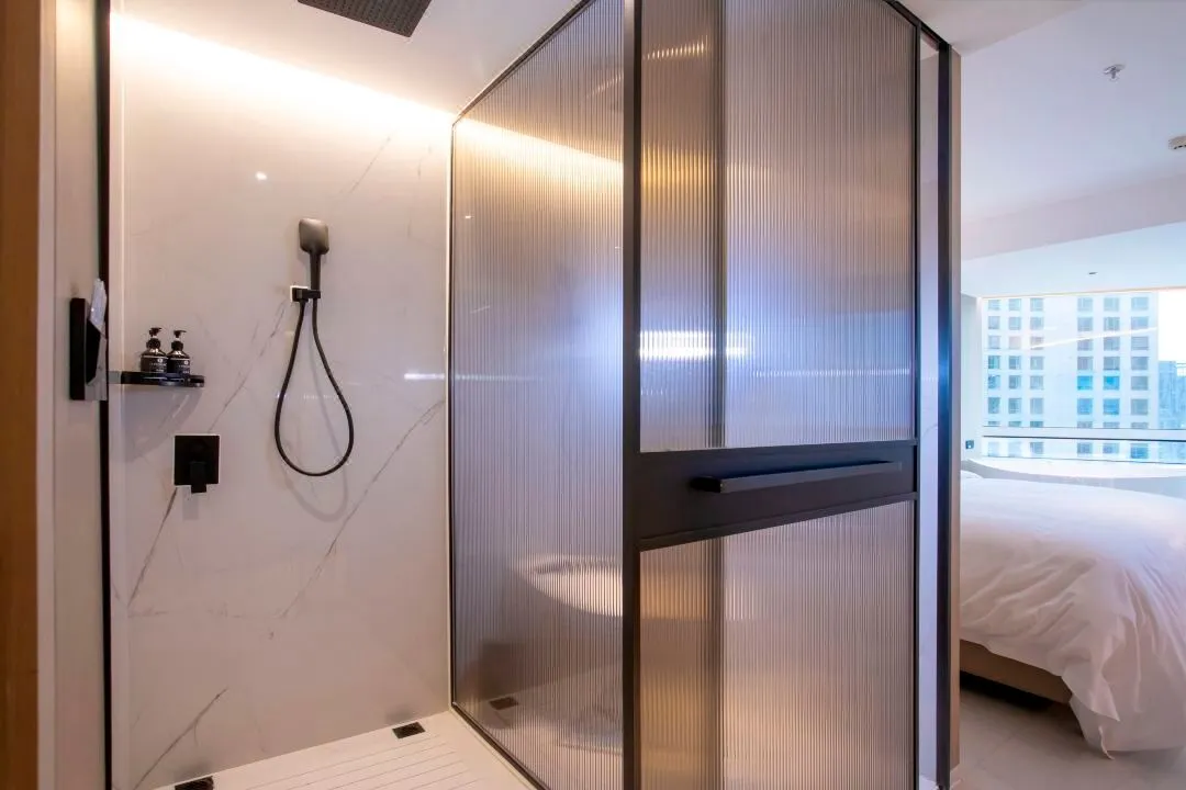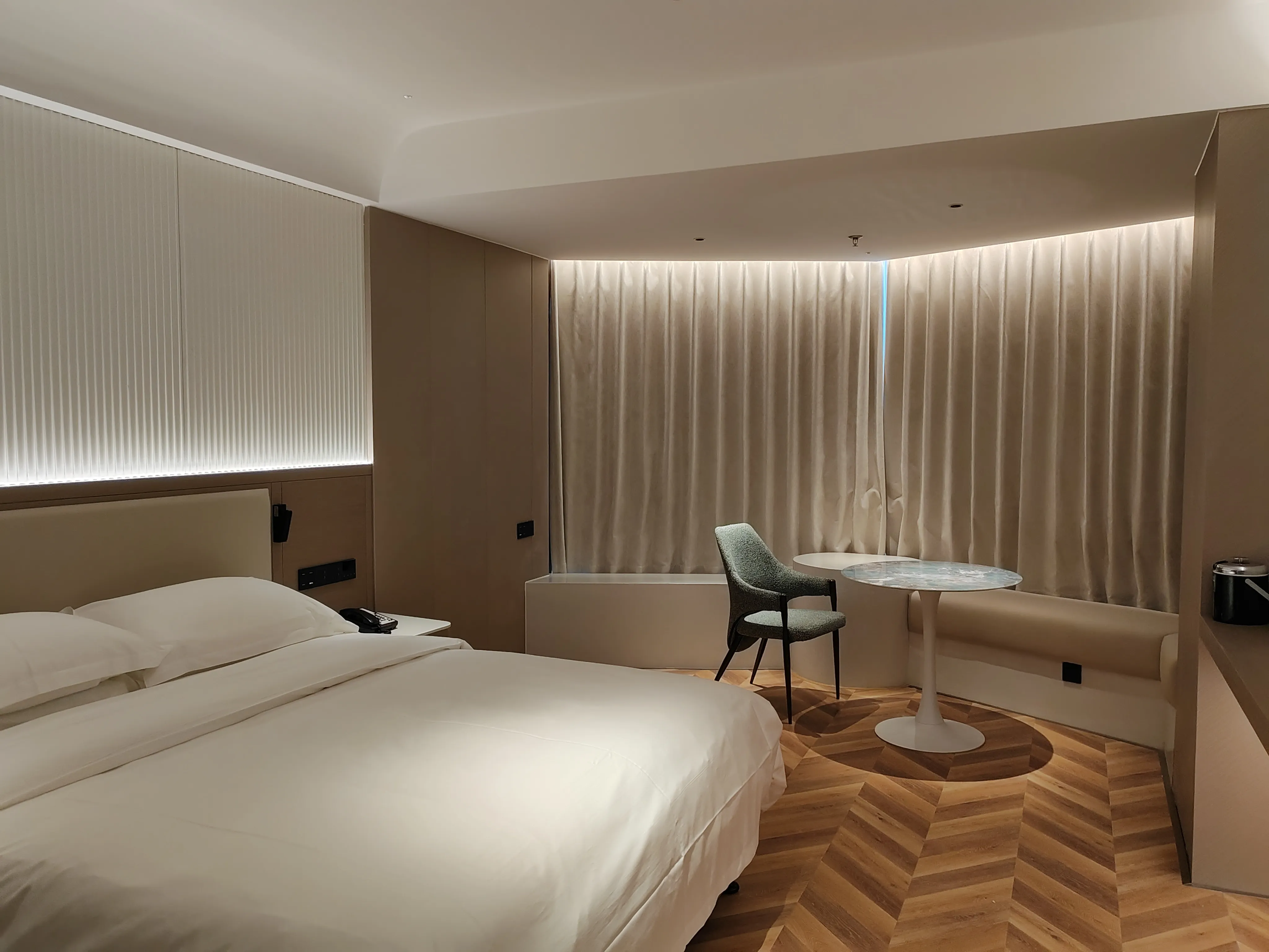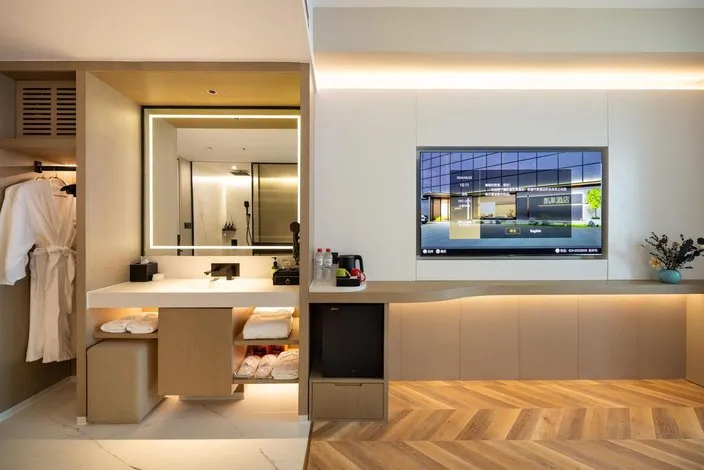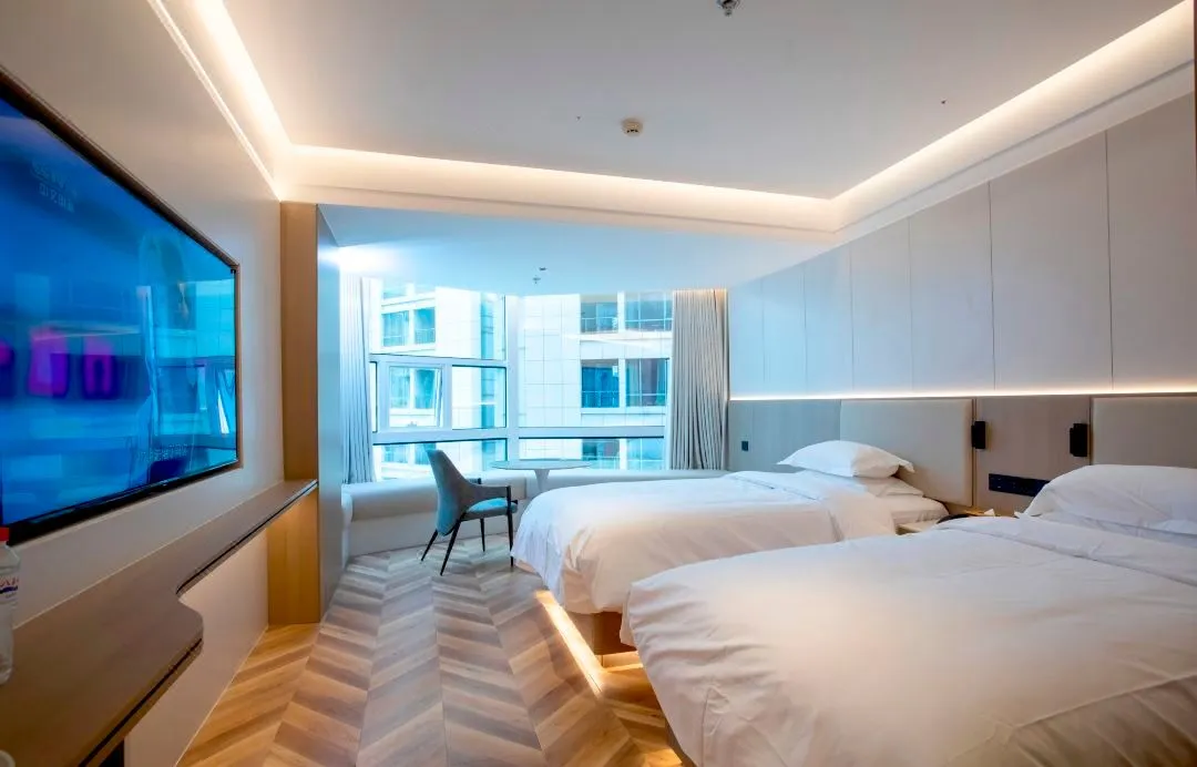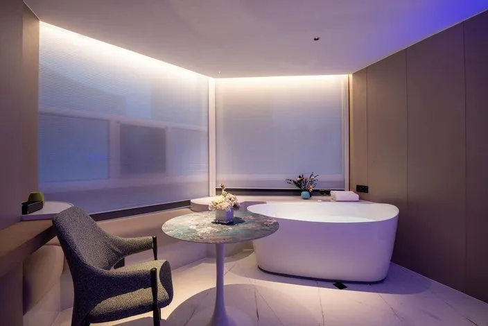照明设计采用极致简约的设计手法,选用高性价比的灼华2S筒射灯和DJ120灯带,做深防眩重点照明、高中低位立面照明,有赖于华彩照明产品 光色纯正、干净通透的优势,恰到好处的将酒店干净舒适、轻松时尚的品质感充分展现。