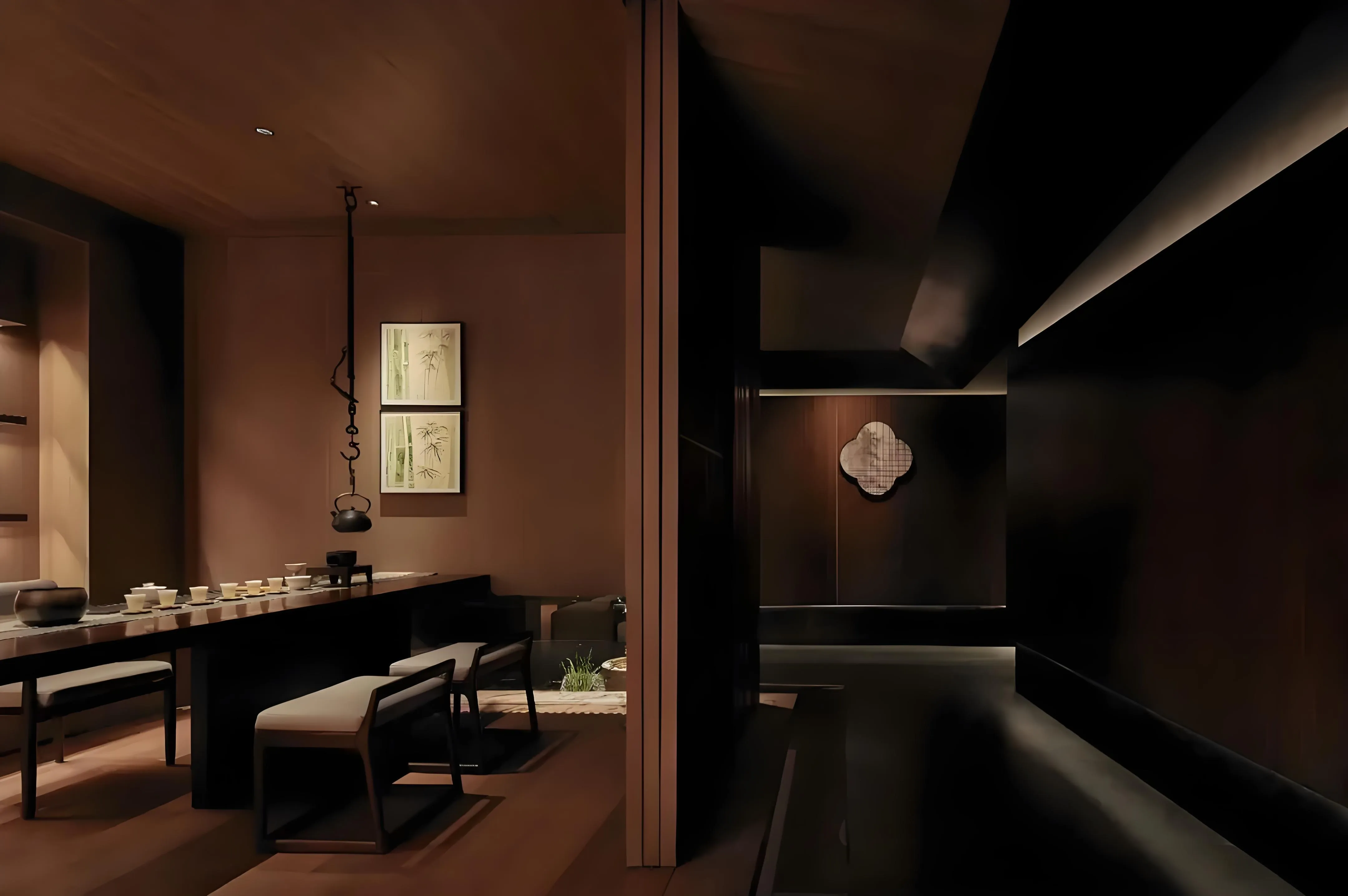 苏园茗宴作为苏园餐饮旗下的高端品牌,延续了苏园的发展理念。以苏州古典园林为灵感,利用建筑构件分合空间,配以小景,采用一步一景的设计手法。设计风格唯美不奢华、含蓄不张扬、精致不造作,与苏荟淡雅的菜品完美契合。