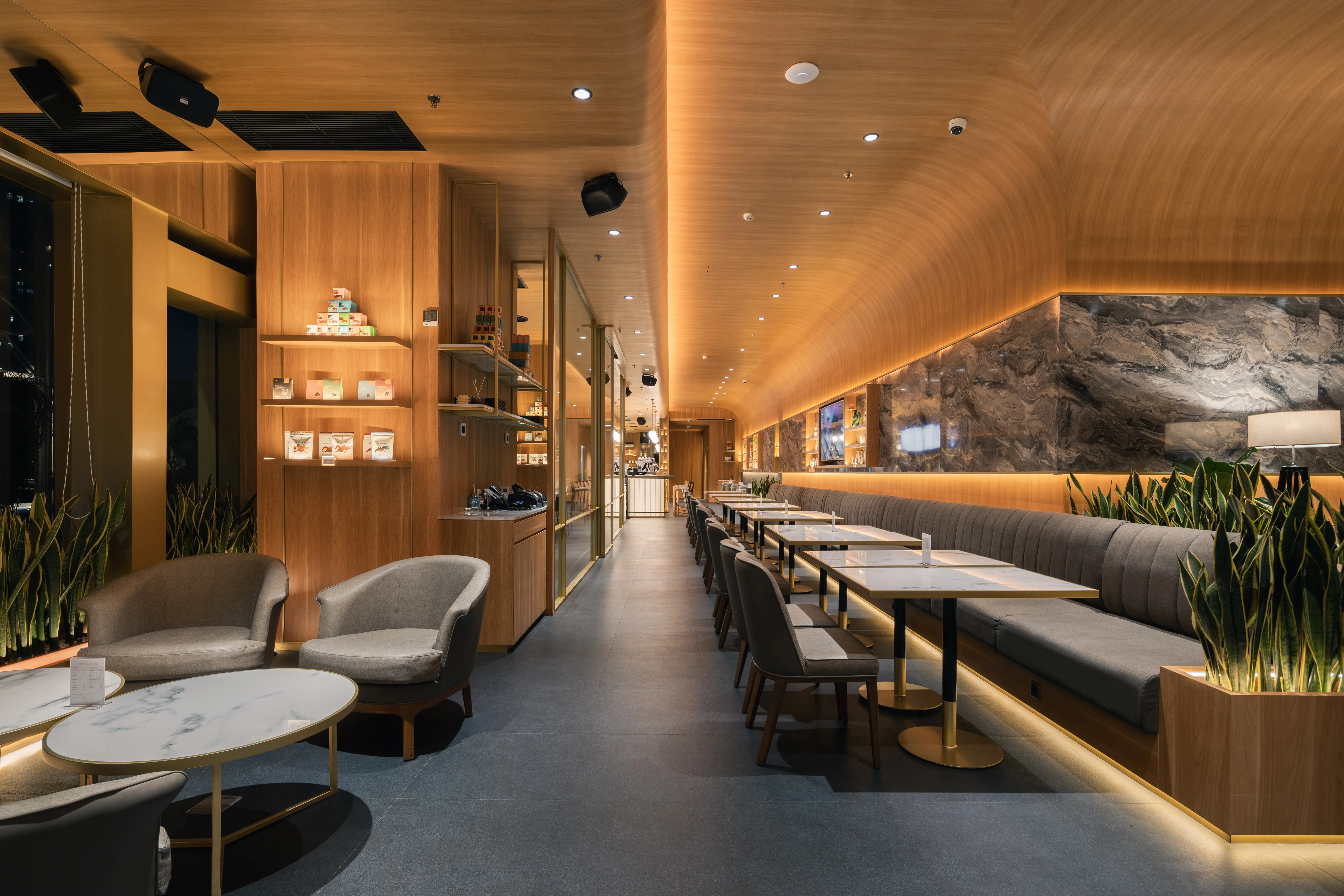 餐厅的灯光设计经过精心打造,以营造一个温馨愉快的用餐体验。柔和的散射光、温暖的色温、重点照明和环境光、自然光的结合,增强了餐厅的整体氛围,使其成为雅加达巧克力爱好者的热门目的地。